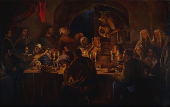 “Nozze di Cana”, olio su tela 240×380 cm, 2005. Chiesa della Madonna del Rosario di Pompei, Sassano, Salerno.