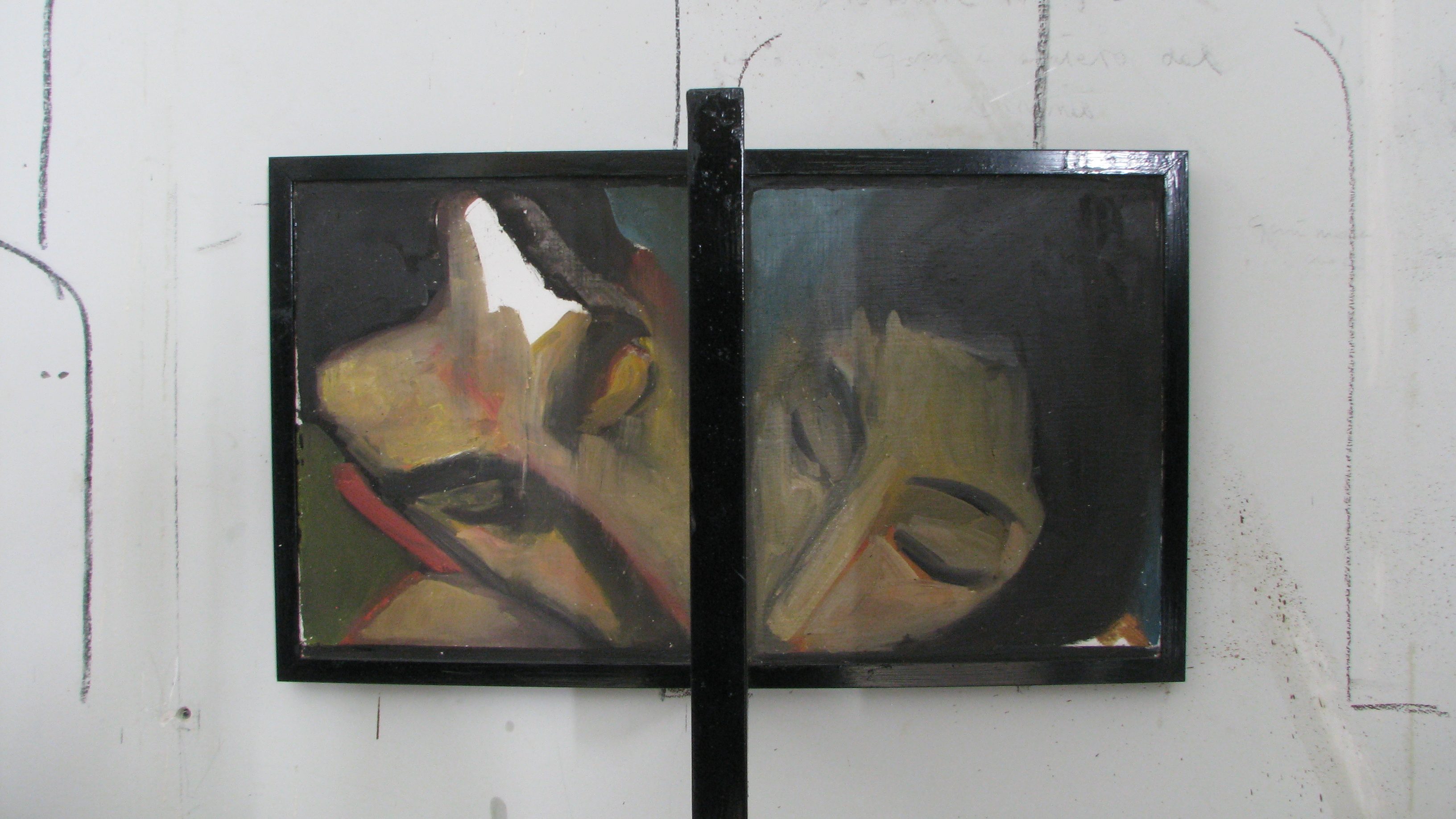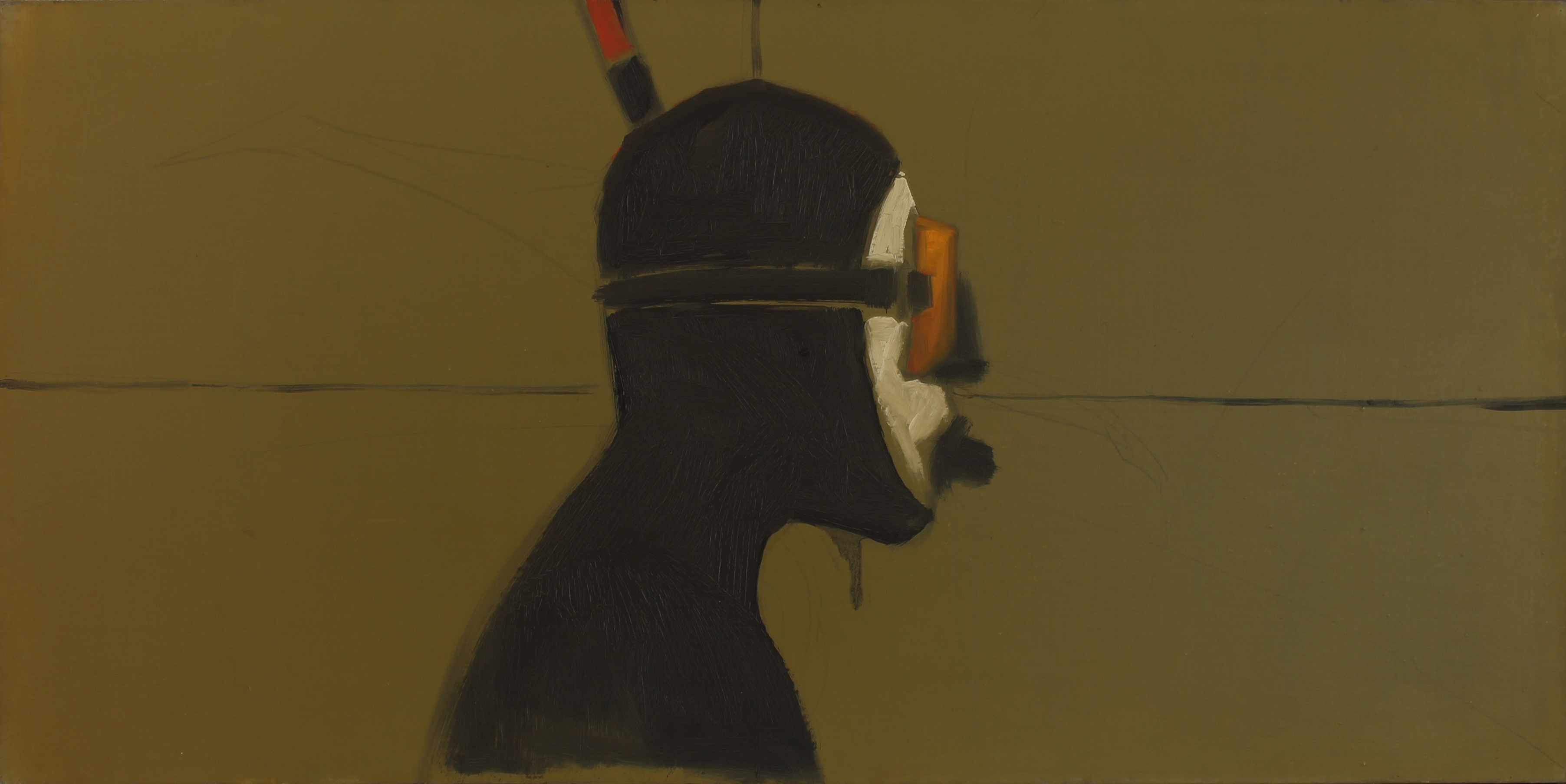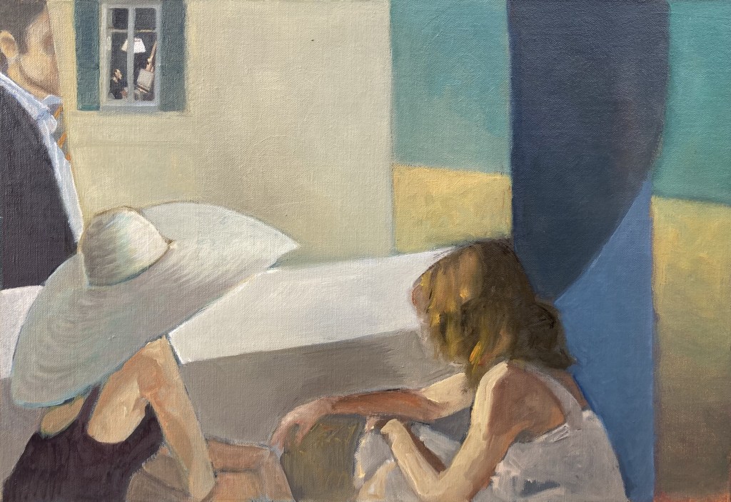 “Speaking about” , olio su tela 80×150 cm, 2020; * collezione privata