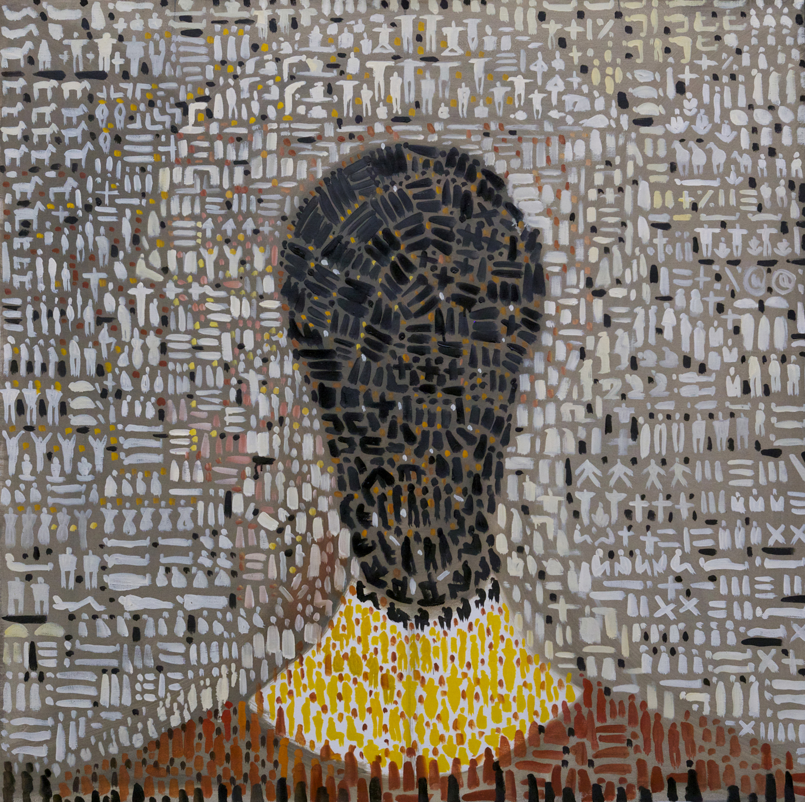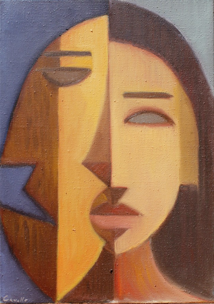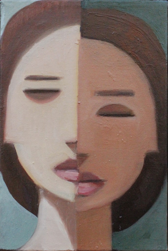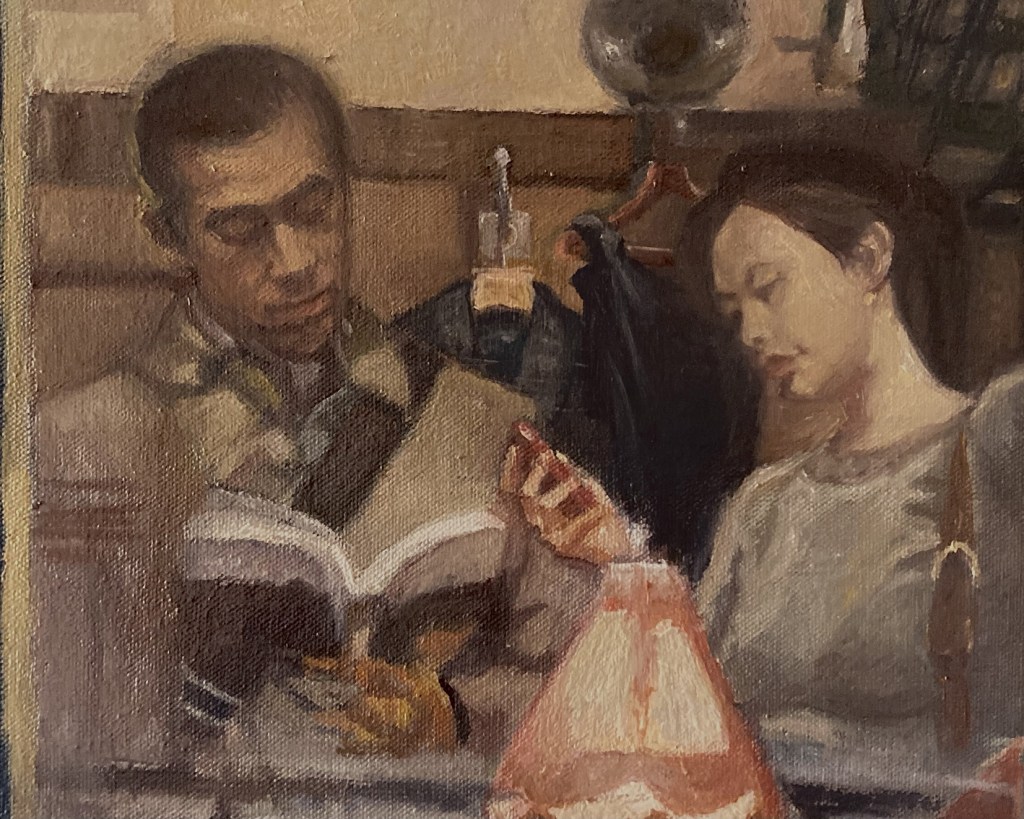 “Speaking about” , olio su tela 80×150 cm, 2020; * collezione privata