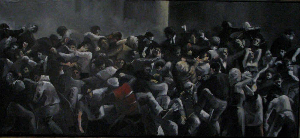 “La rissa”, olio su tela 90×200 cm, 2007;*collezione privata.