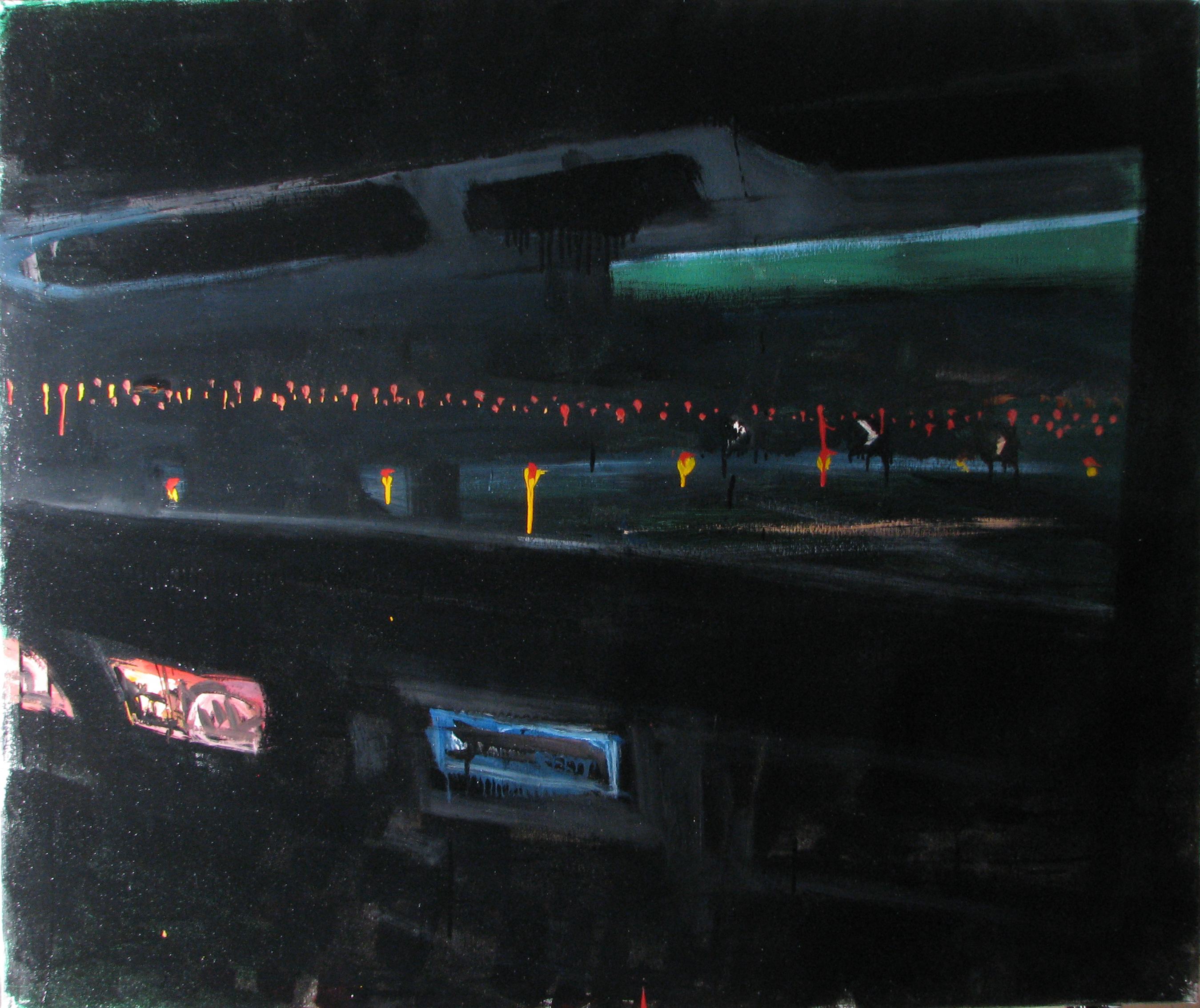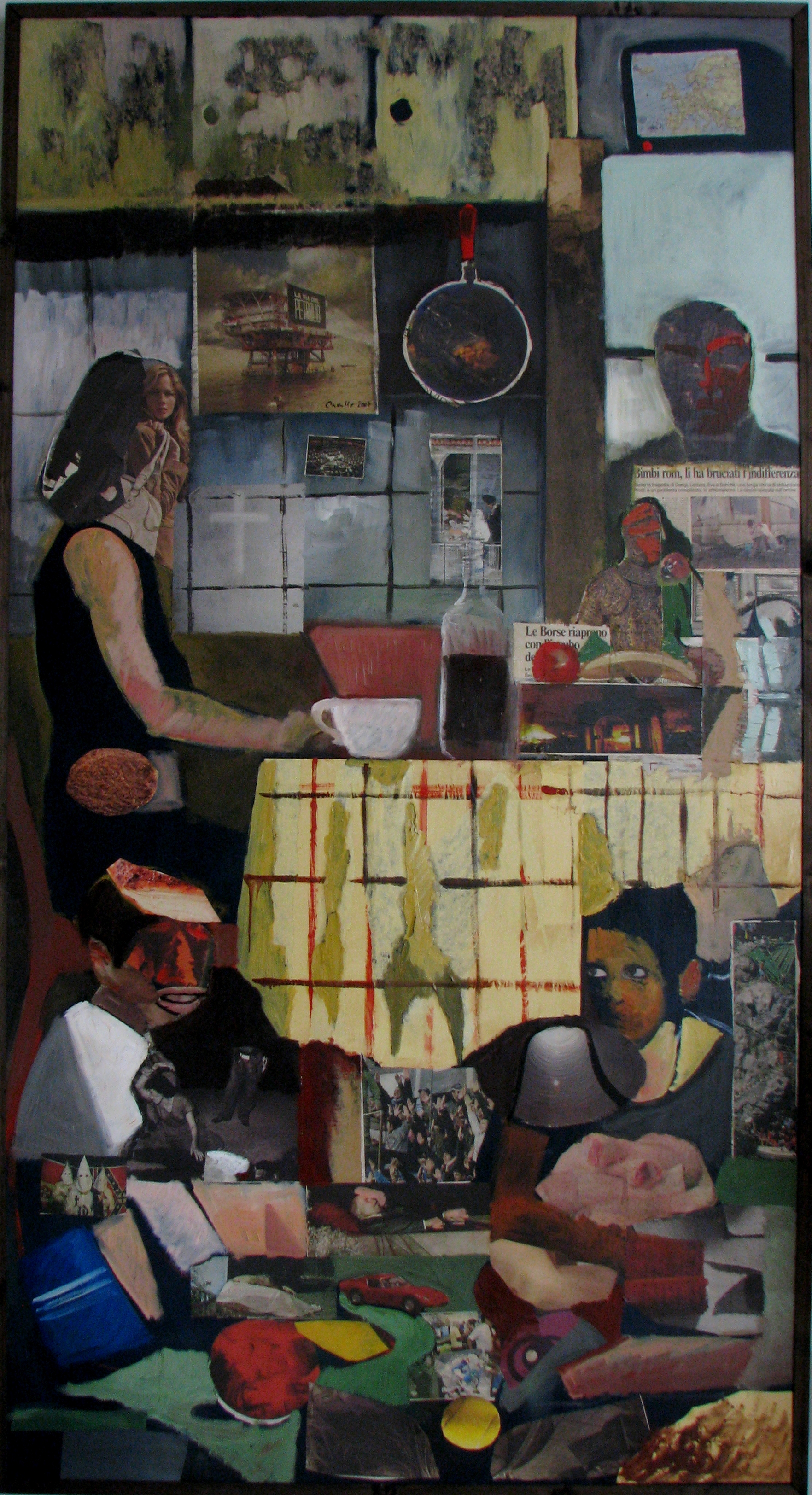 “La casa”, olio su tela 200×150 cm, 2007;*collezione privata. “I viandanti”, olio su tela 100×150 cm, 2007;*coll.privata. “Seconda serata”, olio e collage su tela 235×127 cm, 2007;*coll.privata. “Piano di volo”, olio su tela 150×150 cm, 2007; € 4500 (iva inclusa). “Arlecchino”, olio su tela 20×30 cm, 2007;*coll.privata.