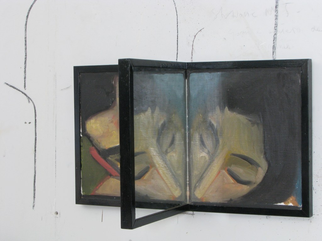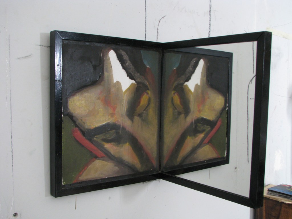 “La tredicesima luna”, olio su tavola e specchio 55x72x55 cm, 2009;*collezione privata.