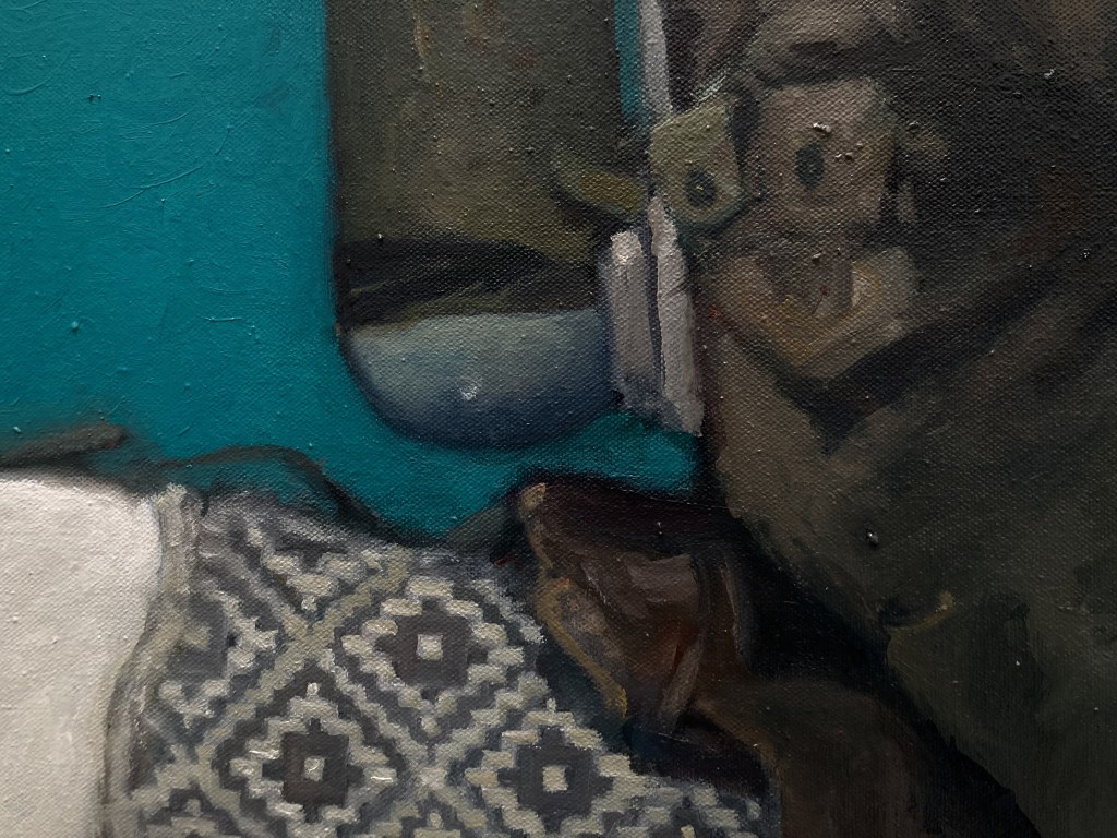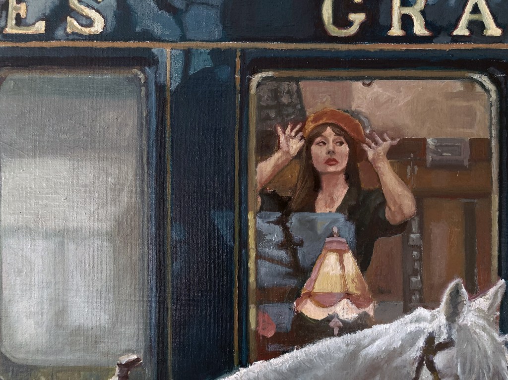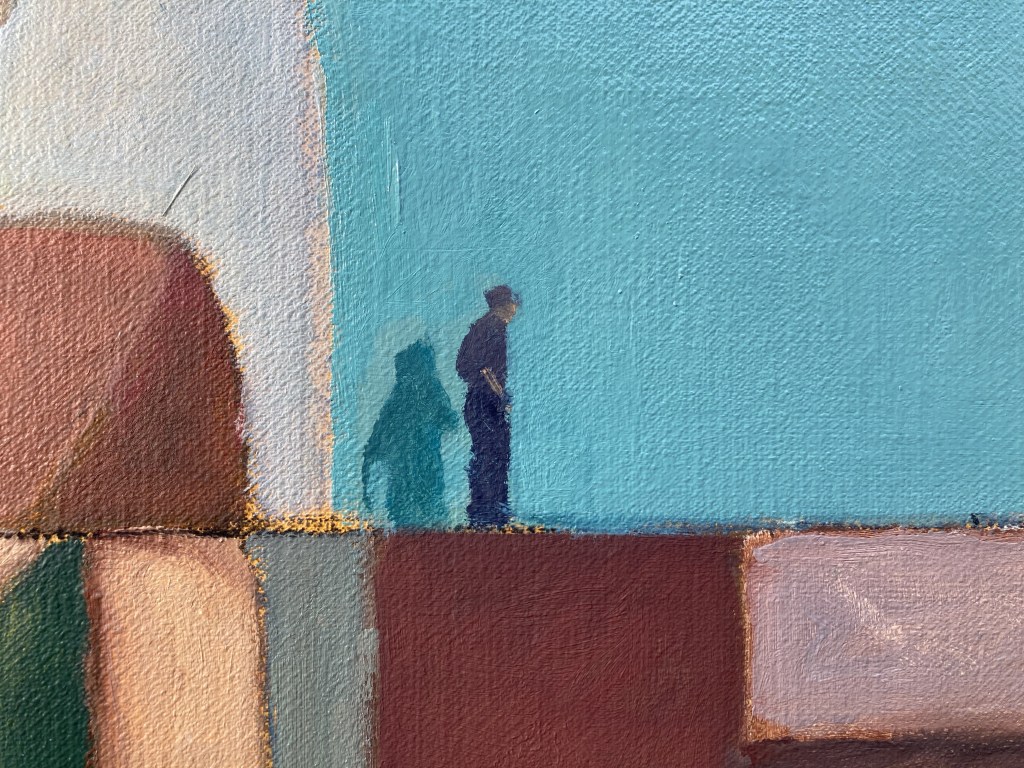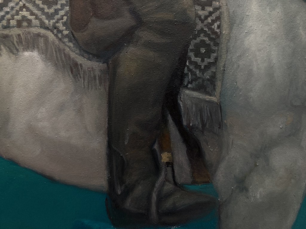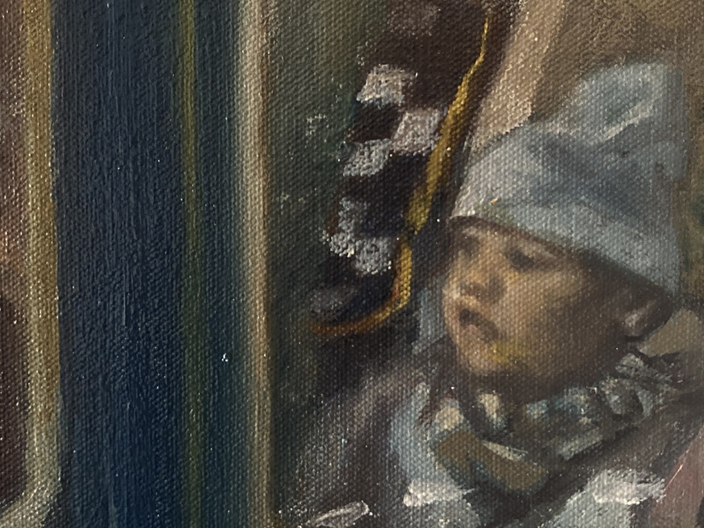 “L’alba del bailo”, olio su tela 101×220 cm, 2025; particolari.