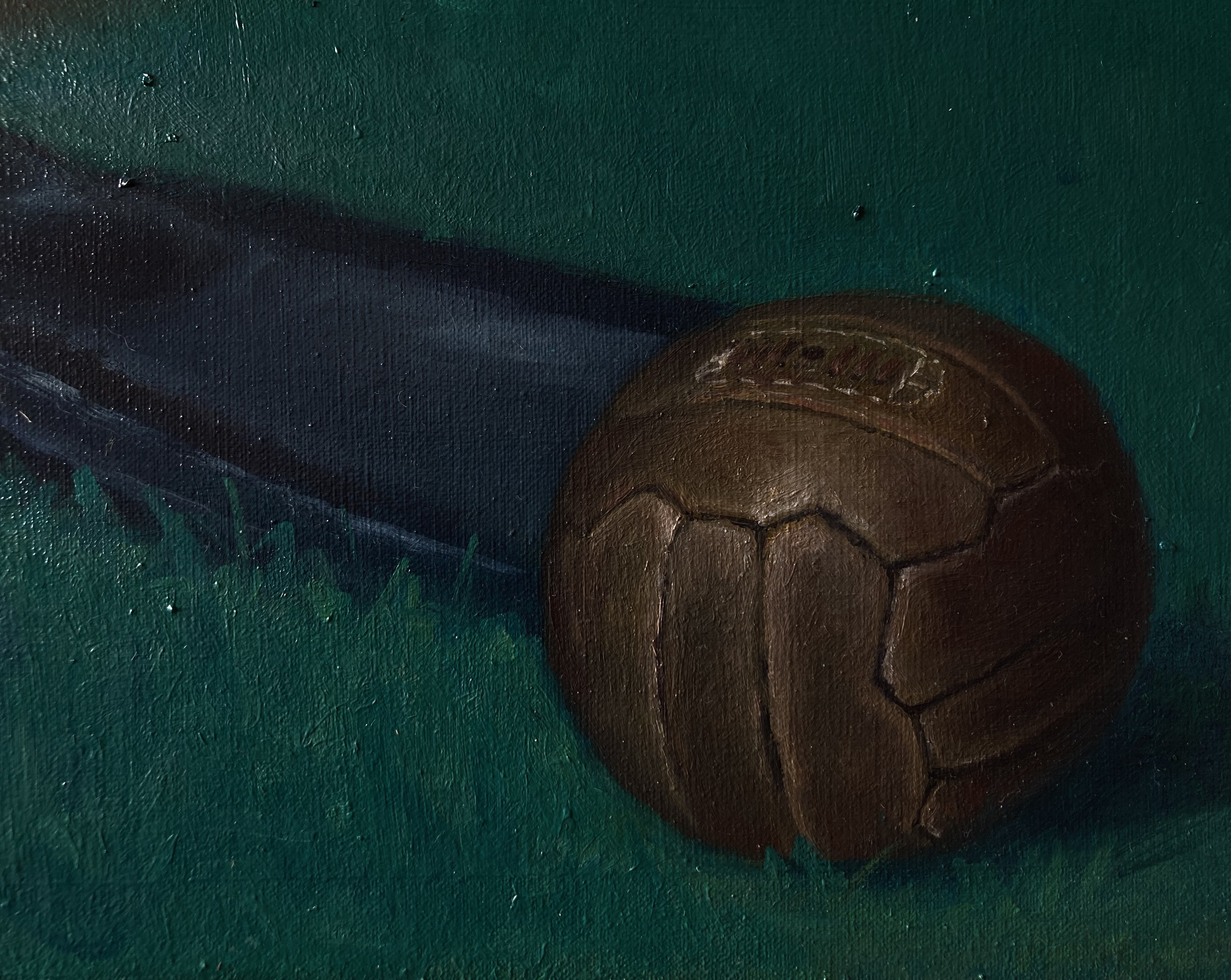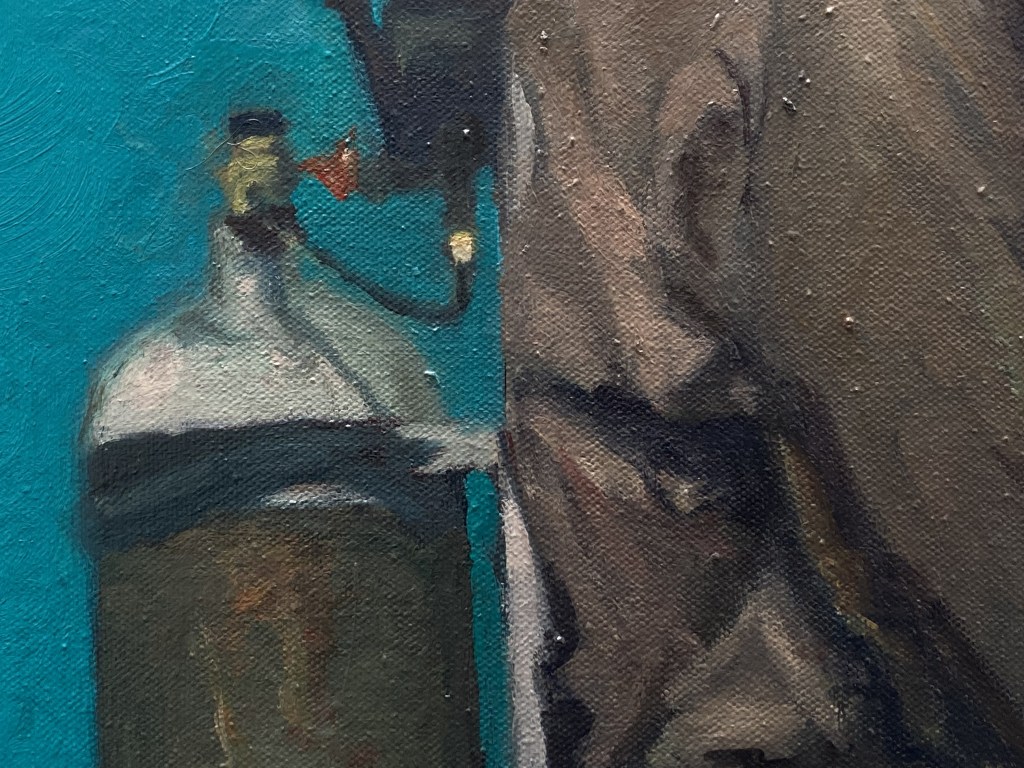 “Il fantasista”, olio su tela 105×55 cm, 2025; € 2600(iva inclusa)