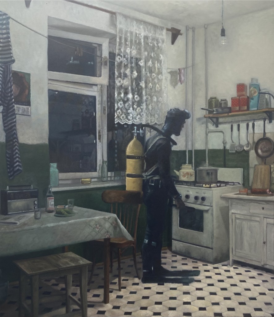 “Acquario”, olio su tela 80×150 cm, 2022; *collezione privata