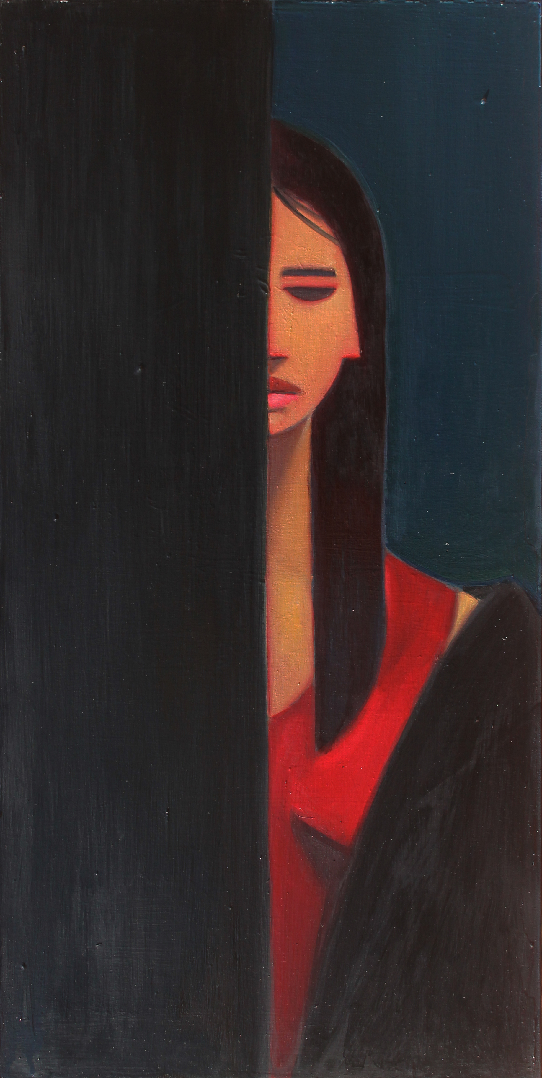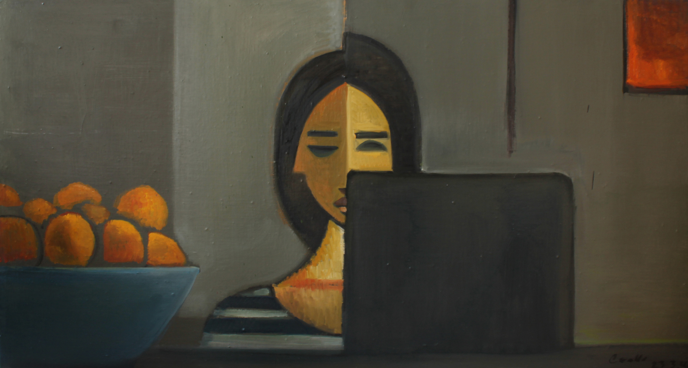 “più o meno 60 minuti”, olio su tela 100×50 cm, 2015;*collezione privata.”Il sipario”, olio su masonite 40×60 cm, 2015;*collezione privata.“L’odalisca”, olio su tela 40×60 cm, 2015;*collezione privata.”Luminosa natura morta con ragazza al computer”, olio su tela 80×150 cm, 2014;*collezione privata.