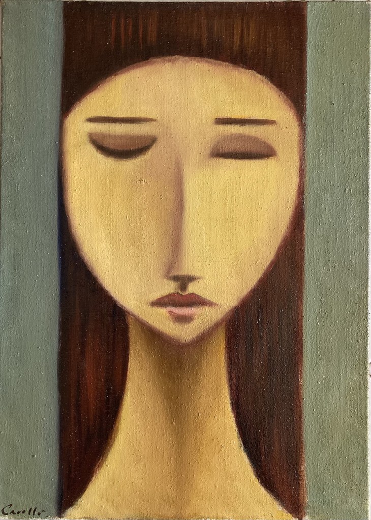 “Creta”, olio su tela 80×80 cm, 2019; * collezione privata. “La riflessione”, olio su tavola lignea 88×55 cm, 2018; * collezione privata.”La veranda”, olio su tela 237×125 cm, 2017; * collezione privata.